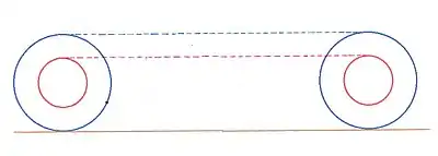 Una rueda se puede representar en dos dimensiones usando dos círculos. El círculo más grande es tangente a una superficie horizontal (por ejemplo, una carretera) sobre la que puede rodar. El círculo más pequeño tiene el mismo centro y está rígidamente fijado al más grande. El círculo más pequeño podría representar el talón de un neumático, una llanta sobre la cual está montado, un eje, etc. Supongamos que los círculos más grandes ruedan sin deslizarse (o patinar) para una revolución completa. Las distancias recorridas por ambos círculos son de la misma longitud, como se muestra en las líneas discontinuas azules y rojas. La distancia para el círculo más grande es igual a su circunferencia, pero la distancia para el círculo más pequeño es más larga que su circunferencia: una paradoja o problema.