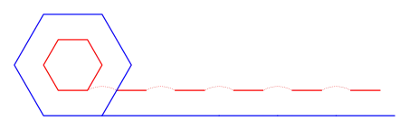 Por lo tanto, un polígono más grande con mil lados pasa por encima y mide una línea recta igual a su perímetro, mientras que al mismo tiempo el más pequeño pasa una línea aproximadamente igual, pero uno está compuesto de mil pequeñas partículas iguales a sus mil lados con una mil pequeños espacios vacíos interpuestos, ya que podemos llamarlos "vacíos" en relación con los mil linelets tocados por los lados del polígono.[4]