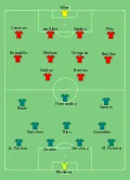 El primer tiempo no tuvo un claro dominador con ambos equipos buscando la manera de hacerse daño pero sin obtener el efecto deseado, haciendo del trámite del juego por momentos bastante lento e impreciso.[35]