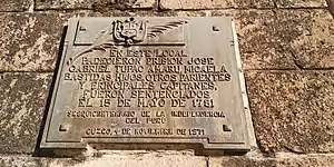 Placa ubicada en el frontis del edificio que rememora la ejecución de Túpac Amaru II