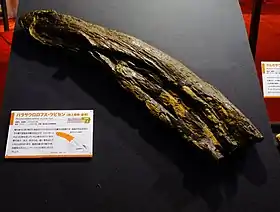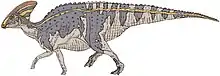 Parasaurolophus (del gr. para/παρα "junto" o "cerca", saurus/σαυρος "lagarto" y lophos/λοφος "cresta" significa "Cercano al lagarto crestado")[1] es un género de dinosaurios ornitópodos hadrosáuridos, que vivieron a finales del período Cretácico, hace aproximadamente 76 a 73 millones de años, en el Campaniense, en lo que hoy es Norteamérica. Su nombre hace referencia a un supuesto parentesco con el dinosaurio Saurolophus. Fue un herbívoro que caminaba tanto de manera bípeda como cuadrúpeda. Se conocen tres especies, Parasaurolophus walkeri, la especie tipo, Parasaurolophus tubicen y la de cresta corta Parasaurolophus cyrtocristatus. Sus restos se han encontrado en Canadá, en las formaciones Formación Oldman y Formación Dinosaur Park ambas parte del Grupo del Río Judith en Alberta para P. walkeri y en Estados Unidos, siendo encontrados en Nuevo México en la Formación Kirtland, P. tubicen, en la Formación Fruitland, P. cyrtocristatus, en Utah, y la Formación Kaiparowits, P. cyrtocristatus.[2] Descrito por primera vez en 1922 por William Parks a partir de un cráneo hallado en Alberta.[3]