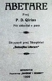 En 1909 publicó un abecedario para escuelas primarias. Aunque el Congreso de Monastir había decidido sobre el nuevo alfabeto, dos versiones del alfabeto todavía estaban presentes en su primer aniversario, lo que muestra cuán frágil era aún el consenso del Congreso. Sin embargo, junto con el abecedario, publicó algunos versos muy conocidos sobre la defensa del nuevo alfabeto albanés.[8]