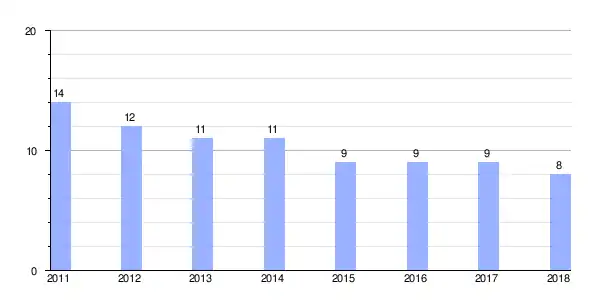 | Gráfica de evolución demográfica de Pardiñeiro entre 2011 y 2018 |