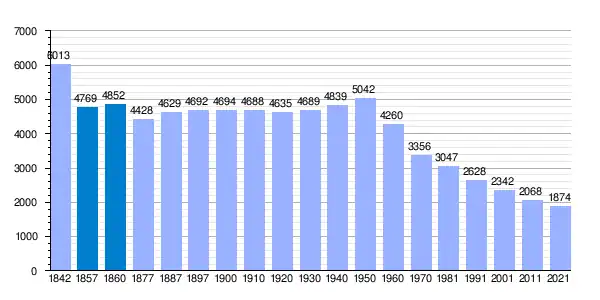 Observando la gráfica inferior, se puede observar que la localidad sufrió un decrecimiento considerable en el intervalo de las décadas de 1950-1970 como consecuencia del éxodo rural ante la mecanización de la agricultura.