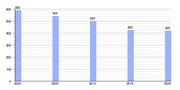 | Gráfica de evolución demográfica de Parga entre 2000 y 2020 |