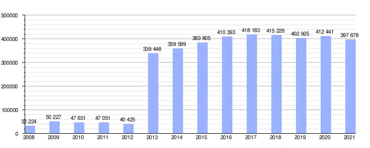 | Gráfica de evolución demográfica de Parla[39] entre 1842 y 2021 |