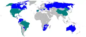 Parmalat en el mundo: en azul los países con presencia directa, en verde los países con presencia en forma de licencia.