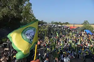 En marzo, el costo de la educación también fue elevado por los manifestantes, quienes organizaron Mahapanchayat (asambleas populares que reúnen a varios municipios).[14] Al 1 de febrero, unos 150 manifestantes habían muerto durante las protestas. Entre ellos, decenas de agricultores murieron congelados en campamentos improvisados. En marzo, el movimiento se extiende a todo el cuerpo social. Mahapanchayats, asamblea de democracia directa se organizan en todo el país. Se organiza una manifestación a gran escala el 21 de marzo, con una marcha a Delhi.[15][16][17]