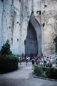 Las latomías son cuevas artificiales creadas por la explotación de las rocas calcáreas como canteras, que posteriormente fueron usadas como prisiones. Su fecha de excavación se ha situado alrededor del siglo V a. C. y se cree que estaría relacionada con la necesidad de piedra para la construcción del barrio de Neapolis.
