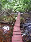 En general, fue hecho con maderas recicladas y realizado por un voluntariado de jóvenes ingenieros, llamados Foro Energético Humanista. Hoy los ambientalistas del mundo tienen un ejemplo a mostrar, el Puente de las 3R's, el Puente Rojo del Parque de Manglares “Tierra de Sueños”.