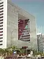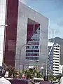 La edificación consta de 15 pisos para un total de 103 metros de altura y con forma de cubo con un gran espacio que sirve de atrio, destacan sus fachadas cubiertas totalmente de cristales, el edificio copa toda una manzana y posee en sus instalaciones pasajes, plaza y un estación de servicios automotriz. Otros de sus atractivos son sus pisos de mosaicos que son obra de artista plástico Nedo.[1][2]