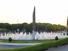 Bajo la dirección del arquitecto y urbanista de la época, Juan María Sánchez, se comenzaron las primeras obras para cercar el perímetro del mismo con una valla perimetral de hormigón moldeado y comenzar a diseñar así los caminos interiores. Tras la finalización de estos trabajos se decidió construir seis fuentes (tres de ellas monumentales y tres paisajistas) que se reparten dentro de la superficie del parque. La disposición de las mismas se realizó mediante premisa de que "el arte de paisaje es el arte de engañar al ojo", por lo que las mismas generan un punto de vista distorsionado que va variando dependiendo del grado acercamiento de los visitantes.