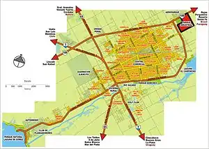 - Diario Democracia (8 de noviembre de 2009). «El Parque Industrial de nuestra ciudad ahora se denomina "Presidente Arturo Frondizi"».