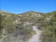 Un relevamiento de la flora del área ha identificado 27 familias, 63 géneros y 81 especies. Las especies más significativas son la pichanilla o retama (Senna aphylla), alpataco (Prosopis alpataco), jarilla hembra (Larrea divaricata), jarilla macho (Larrea cuneifolia) y algunos ejemplares de jarilla crespa (Larrea nitida). Se ha registrado la presencia de endemismos como el solupe (Ephedra ochreata) y el manca caballos (Prosopidastrum globosum), entre otros.[3]