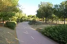 Existe un carril bici en forma de anillo de unos 750 metros muy utilizado para pasear andando o con patines y para entrenamientos a pie y en bicicleta. Este carril no forma parte del Anillo Verde Ciclista, el cual también pasa por el parque.