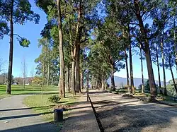 El parque, delimitado casi íntegramente por la calle Dinamarca en todo su perímetro y al este por la calle Francia, tiene una superficie de 60 000 m²[15][1] y está configurado a partir de un paseo central que parte de la calle Francia como continuación de la calle Italia. En algunos puntos dispersos del parque y alrededor del paseo central se encuentran cien ejemplares de eucaliptos exóticos de gruesos troncos en la base y copas amplias y frondosas.[16][17] Estos eucaliptos dispuestos a ambos lados de la avenida central correspondiente al diseño original del jardín, forman una doble alineación y entre ellos se hallan especies de eucalipto viminalis, eucalipto rosado, eucalipto azul y eucalipto botryoides o bangalay.[11]
