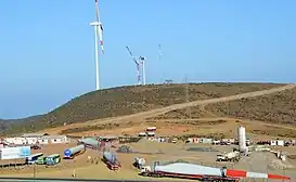Las turbinas llegaron en barco desde sus fábricas de origen hasta el puerto de Coquimbo, y fueron transportadas en camiones especiales hasta el lugar de instalación, ya que cada torre mide 80 metros de alto y tiene tres aspas de más de 44 m de longitud.
