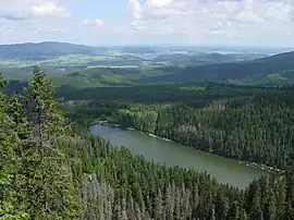 La cordillera Šumava está cubierta por el más amplio bosque de Europa central, cuya composición natural fue, sin embargo, alterada y hoy prevalecen las piceas noruegas en la mayor parte de la zona. En muchos lugares se plantaron piceas no nativas. No están bien adaptadas al duro clima local y por lo tanto son más sensibles a los elementos, como los vientos fuertes (por ejemplo los de las tormentas de los años ochenta o los de principios de 2007) y escolitinos (Ips typographus). Numerosas mesetas grandes con turberas aisladas, lagos glaciares y restos de bosques primigenios (como el de Boubín) completan un mosaico de hábitats que están poco perturbados por asentamientos humanos puesto que los habitantes de habla alemana fueron expulsados después de la Segunda Guerra Mundial y la zona se convirtió en parte de la zona desierta a lo largo de la frontera del bloque del este. Desde los años setenta del siglo XX, existe una población estable de linces.