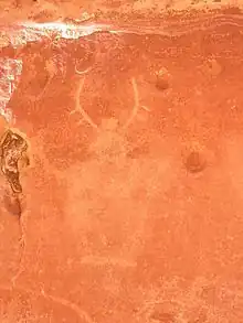 - Formación Summerville: barro marrón rojizo y arena blanca depositados en marismas.
