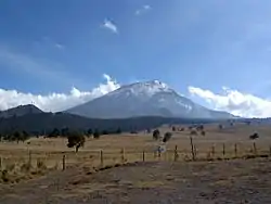 ![]() Popocatépetl visto desde el Paso de Cortés. | ||
