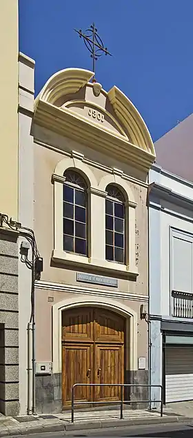 El edificio data de 1901, según inscripción en la parte superior de la fachada delantera. El uso religioso como iglesia parroquial se inició en el año 2000 y está dedicada a la Santísima Virgen en su advocación de María Auxilio de los Cristianos. La imagen de la Virgen procesiona cada año el día 24 de mayo, conmemoración según el santoral católico de María Auxiliadora. La procesión lleva más de 80 años desfilando, no siempre ha salido desde la parroquia. En su origen esta imagen la custodiaban las hermanas Salesianas del colegio Hogar Escuela María Auxiliadora de la calle La Rosa, años más tarde pasó al colegio de la Orden de los Salesianos, frente al antiguo hospital militar, hasta la demolición y traslado del colegio y la comunidad religiosa a San Cristóbal de La Laguna. El cambio de salida llegó a raíz de que en el año 2000, el edificio sito en la calle General Serrano, número 44; se habilitó como parroquia.