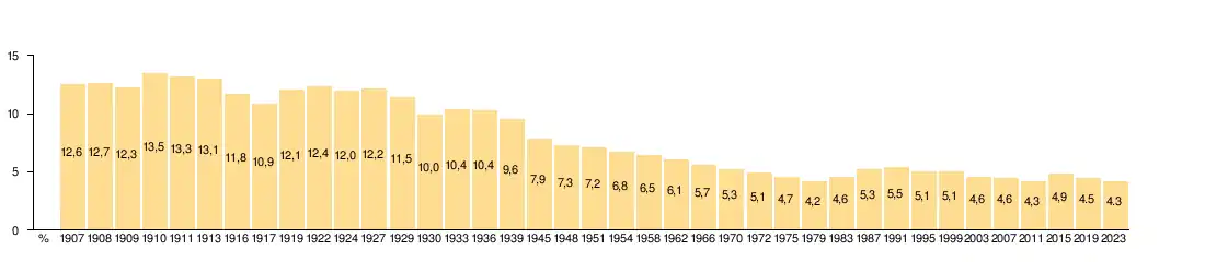 | 1954 | 135.768 (#6) | 6,76% | 12/200 |