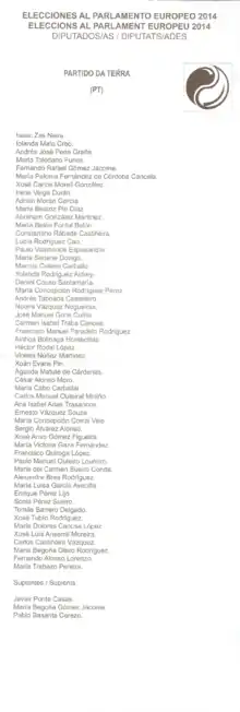El Partido da Terra (PT) es un partido político con sede en Galicia que se postula como partidario de la democracia directa, de la desprofesionalización de la política, del decrecimento y de la soberanía y la sostenibilidad en todos los ámbitos.[1]
