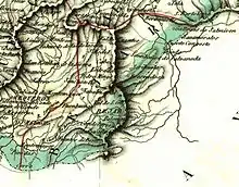 Parte del mapa de 1847 titulado Provincia de Salamanca, parte del antiguo Reino de León, en el que se puede observar la extensión del partido judicial de Béjar en el siglo XIX
