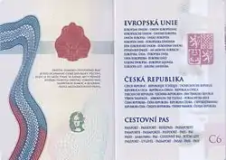 Como es la primera serie de pasaportes emitida tras la integración de la República Checa a la Unión Europea, es el primero en llevar las palabras "Evropská Unie" y ha sido modificado para ajustarse al diseño estándar de pasaporte de la UE. La página de datos se trasladó a la página dos y se añadió el idioma francés. Las páginas seis y siete llevan ahora traducciones de los campos de datos a dieciocho idiomas de la Unión Europea y el ruso.