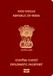 - Diplomatic Passport (Cubierta granate): Es emitido a los embajadores indios, miembros del Parlamento de la India, ministros y algunos altos cargos gubernamentales y cónsules diplomáticos. Además, también lo pueden solicitar los altos cargos de los estados que realicen viajes oficiales. Es un pasaporte de "Tipo D", ya que D significa Diplomático. Desde 2008, todos los pasaportes oficiales emitidos son biométricos, ya que cuentan con un chip de datos incluido en el documento. Los poseedores de pasaportes diplomáticos no necesitan visado para viajar a algunos de los países que requieren de visado con un pasaporte ordinario.