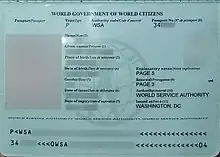 El Pasaporte Mundial es un documento emitido por la World Service Authority (WSA), una organización sin ánimo de lucro fundada por Garry Davis en 1954, citando el Artículo 13, Sección 2, de la Declaración universal de los derechos humanos.[1][2]