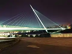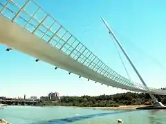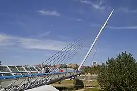 La pasarela del Voluntariado es una pasarela peatonal y ciclista que conecta los barrios zaragozanos de La Almozara y el Actur (Aragón, España), inaugurada el 24 de abril de 2008.[1] El tablero tiene 277 metros de longitud, de los que 230 metros son en tramo curvo y 47 en tramo recto. El tablero se encuentra sujetado por 46 tirantes provenientes de un mástil de 75 metros de altura, con una inclinación de 30°, y una anchura de 4,5 metros.[2]