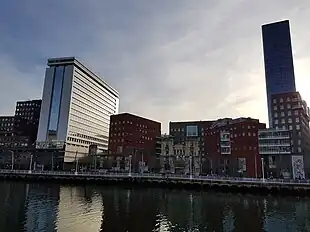 ![]() Paseo de Uribitarte a su paso por el edificio Albia remodelado y las torres Isozaki. | ||