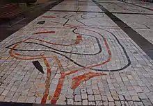 Desde el año 1966 cuenta con un pavimento de mármol que es un mosaico abstracto, obra de Antonio Suárez.[2]. El mosaico ocupa una superficie de 3689 m2 [3] sobre la que hay seis quioscos y, por temporadas, carpas comerciales que dañan el pavimento con sus fijaciones.[4] A comienzos de 2010 se realizó una restauración de parte de este mosaico.[5]