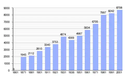 | Gráfica de evolución demográfica de Pasian di Prato entre 1861 y 2001 |