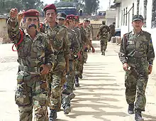- De ataque. o de carga. Marcha animada que al compás de las bandas de tambores y cornetas ejecuta la infantería para dar una carga a la bayoneta, tomar una posición, apoderarse de una batería o atrincheramiento y perseguir al enemigo que se retira. Su velocidad es de 120 pasos por minuto.
