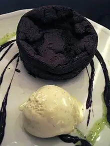 Un pastel similar con un poco o nada de harina en que la matriz del huevo que se permite colapsar es conocido como chocolate "caído" o "fundido" y fue popularizado por, entre otros, los restaurantes de Jean-Georges Vongerichten.