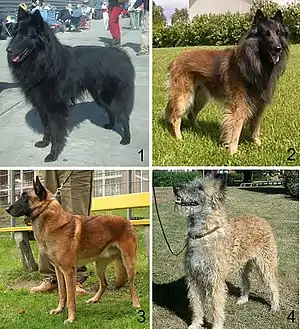 Puesto que la longitud, la dirección, el aspecto y el color del pelo son variados en el pastor belga, se ha adoptado este punto como criterio para distinguir las cuatro variedades de la raza: Groenendael, Tervueren, Malinois y Laekenois. Estas cuatro variedades son juzgadas por separado. Considerado como el perro más cercano al coyote por sus rasgos físicos y su forma de actuar.