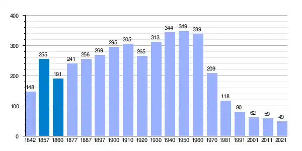 | Gráfica de evolución demográfica de Pastores[5] entre 1842 y 2021 |