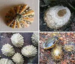 ![]() Imágenes de lapas verdaderas, conchas e individuos vivos de tres especies | ||
