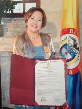 - Dr. Álvaro Uribe Vélez – Presidente Constitucional de la República de Colombia – Reconocimiento como Embajadora Cultural. –Bogotá (Colombia), febrero de 2010.