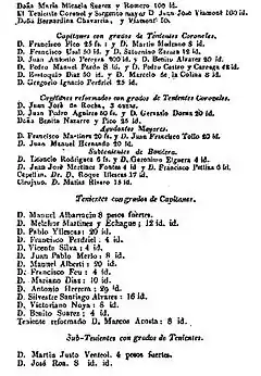 Las damas que se suscribieron fueron: Tomasa de la Quintana, María de los Remedios de Escalada, María de las Nieves de Escalada, María Eugenia de Escalada de Demaría, María de la Quintana, María Sánchez de Thompson, Carmen de la Quintanilla de Alvear, Ramona Esquivel y Aldao, Petrona Bernardina Cordero, Rufina de Orma, Isabel Calvimontes de Agrelo, Magdalena de Castro de Herrero, Ana García de Zúñiga y María de la Encarnación Andonaégui de Valdepares.