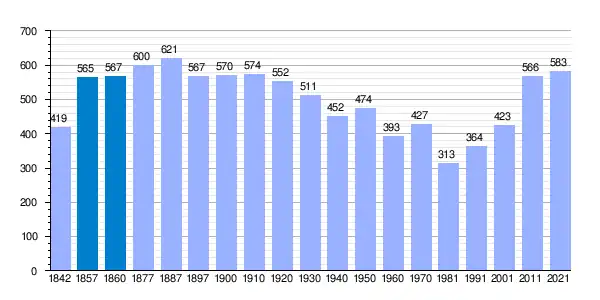 Población de derecho según los censos de población del INE. Población de hecho según los censos de población del INE.Entre el Censo de 1857 y el anterior, crece el término del municipio porque incorpora a 175171 (Vilagut).[3] |