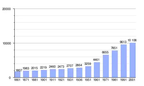 Gráfica de evolución demográfica de Paullo entre 1861 y 2001