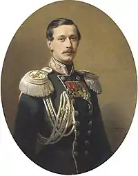 Contrajo matrimonio en primeras nupcias en San Petersburgo el 25 de julio de 1855 con la Princesa Olga Esperovna Beloselskaya-Belozerskaya (17 de febrero de 1838 - 9 de diciembre de 1869), hija del Príncipe Esper Alexandrovich Beloselsky-Belozersky (San Petersburgo, 27 de diciembre de 1802 - San Petersburgo, 15 de junio de 1846) y de su esposa Yelena Pavlovna Bibikova (septiembre de 1812 - 15 de febrero de 1888), y tuvo descendencia.