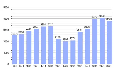 | Gráfica de evolución demográfica de Pavone Canavese entre 1861 y 2001 |