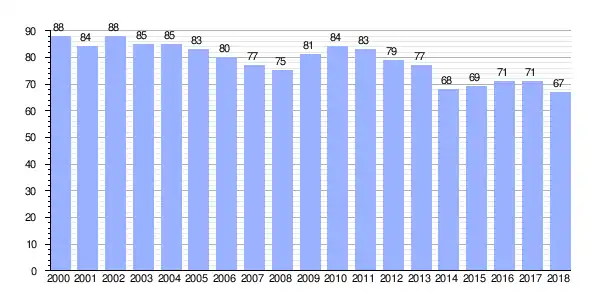 | Gráfica de evolución demográfica de Payosaco entre 2000 y 2018 |