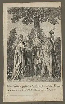 En 1787 el imperio otomano declaró la guerra a Rusia. Poco después, el emperador austríaco, aliado con la zarina Catalina II desde 1783,[2] entró en el conflicto en apoyo de Rusia. Austria esperaba beneficiarse del progresivo deterioro del imperio turco al tiempo que trataba de frenar la expansión rusa,[3] perjudicial para sus intereses en los Balcanes. Aunque la primera etapa de la guerra fue desfavorable para los ejércitos austríacos, finalmente, consiguieron ocupar Serbia y Valaquia (1789-1791) y penetrar en Moldavia (1788), donde se unirían a las tropas rusas. Sin embargo, la muerte del emperador José II de Habsburgo (1790),[4] la situación que se vivía en Francia[4][5] (que llevaría a las potencias a la intervención armada en 1792) y la amenaza de la alianza firmada entre Prusia y el imperio otomano (1790),[6][7] llevaron a Austria a firmar un armisticio con los turcos en 1790.