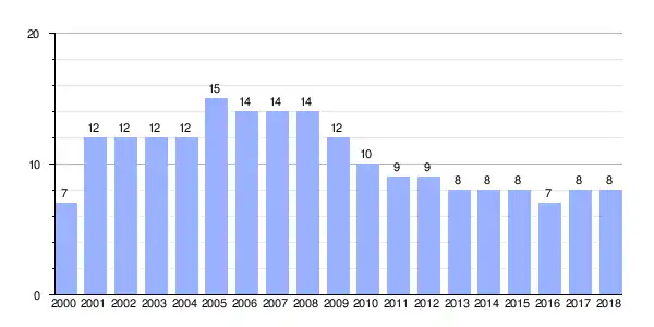 | Gráfica de evolución demográfica de Pazo entre 2000 y 2018 |