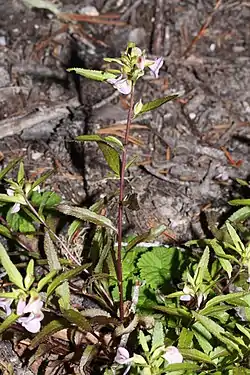 Es una planta perenne herbácea que produce varios tallos de hasta 80 centímetros de altura, de color verdoso a rojo oscuro. Las hojas miden hasta 10 centímetros de largo, lineal en la forma y alineados con los dientes. La inflorescencia es un pequeño racimo de flores que ocupan la parte superior del vástago. Cada flor es de color blanco a púrpura o amarillo y es de hasta 1,6 centímetros de largo y se divide en un labio superior en forma de pico curvo o en espiral y un labio amplio de tres lóbulos inferiores. El fruto es una cápsula de más de un centímetro de longitud que contiene semillas lisas.